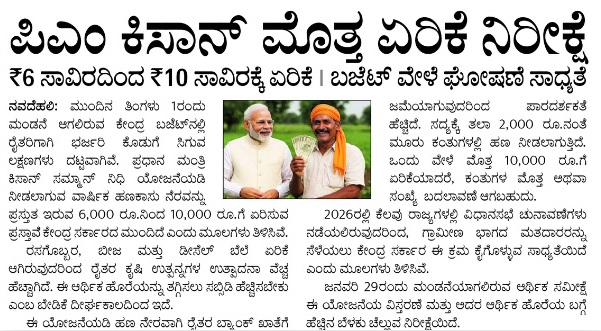 ಆದರೆ ಅಸೆಂಬ್ಲಿಯಲ್ಲಿ ನಡೆಯುತ್ತಿರುವಂತಹ ಚಟುವಟಿಕೆಗಳಲ್ಲಿ ಈ 10,000ವನ್ನು 12,000 ಆಗಿ ವರ್ಗಾಯಿಸಬೇಕು ಎಂಬ ಮಾಹಿತಿ ಓಡಾಡುತ್ತಿದೆ ಅದಷ್ಟೇ ಅಲ್ಲ ಪ್ರತಿಯೊಬ್ಬ ರೈತರಿಗೂ ಸಹ ಇನ್ನು ಮುಂದೆ ನಾಲ್ಕು ಸಾವಿರ ಹಣ ನಿಮ್ಮ ಒಂದು ಖಾತೆಗೆ ಬೀಳುವ ಸಾಧ್ಯತೆ ಹೆಚ್ಚಿದೆ ಈಗಾಗಲೇ ಯಾರಿಗೆಲ್ಲ ನಿಮ್ಮ ಒಂದು ಖಾತೆಗೆ 2000 ಹಣ ಜಮಾವಾಗುತ್ತಿದೆಯೋ ಅಂತವರಿಗೆ ಮುಂದಿನ ಕಂತು 4000 ಹಣ ಬೀಳುವ ಸಾಧ್ಯತೆ ಹೆಚ್ಚಿದೆ ಇದು ನಾನು ಹೇಳುತ್ತಿರುವ ಮಾಹಿತಿ ಅಲ್ಲ ಒಂದು ನ್ಯೂಸ್ ಮೂಲಕ ಬಂದಂತಹ ಮಾಹಿತಿ ಹಾಗೆ ಇಲ್ಲಿ ಕೆಳಗೆ ನಿಮಗೆ ಒಂದು ಆರ್ಟಿಕಲ್ ಪಿಚ್ಚರ್ ಸಹ ಹಾಕಿರುತ್ತೇನೆ. ಅದನ್ನು ಒಮ್ಮೆ ನೋಡಿ ಹಾಗೆ ಇಲ್ಲಿ ಟೈಮ್ ಆಫ್ ಇಂಡಿಯಾ ಒಂದು ನ್ಯೂಸ್ ಆಗಿರಬಹುದು ಅವರ ಒಂದು ವೆಬ್ ಸೈಟ್ ಆಗಿರಬಹುದು ಅವರು ಸಹ ಇದರ ಬಗ್ಗೆ ಮಾಹಿತಿಯನ್ನು ನೀಡಿರುತ್ತಾರೆ ಅಲ್ಲಿ ಸಹ ನೀವು ಚೆಕ್ ಮಾಡಬಹುದು ಅಲ್ಲಿ ನಿಮಗೆ 10,000 ದಿಂದ 12000 ಕ್ಕೆ ಏರಿಕೆ ಆಗುವ ಸಾಧ್ಯತೆ ಹೆಚ್ಚಿದೆ ಮತ್ತು ಅಸೆಂಬ್ಲಿಯಲ್ಲಿ ಈ ಎಲ್ಲಾ ಮಾಹಿತಿಯನ್ನು ಮಾತನಾಡುತ್ತಿದ್ದಾರೆ.